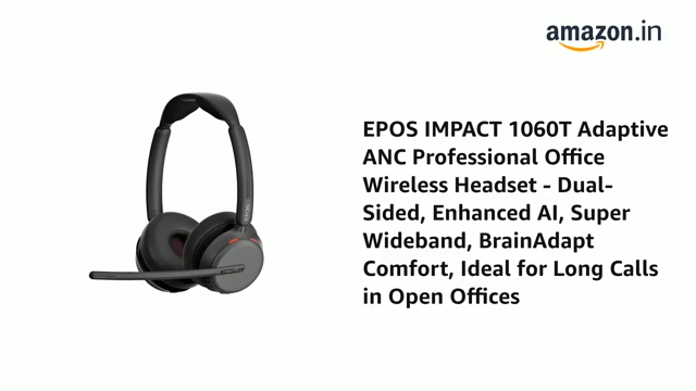 The EPOS IMPACT 1060T ANC is designed for professionals needing high-performance noise cancellation in open offices and remote work. Featuring hybrid adaptive ANC, this wireless headset with mic effectively blocks out background noise to help you stay focused. EPOS AI adaptive microphones ensure superior voice pickup, delivering crystal-clear calls on Microsoft Teams, Zoom, and Skype. With super wideband audio, this Bluetooth headset for work enhances natural speech clarity, making conversations more lifelike. Triple wireless connectivity lets you seamlessly switch between PC, laptop, smartphone, and tablet for uninterrupted workflows. Intuitive controls allow you to mute calls by moving the boom arm, while the included contactless charging stand keeps your headset powered at all times. Perfect for office professionals, call centers, and hybrid workers, the EPOS IMPACT 1060T ANC is a wireless PC headset for work, Windows, Mac, and mobile, offering advanced noise reduction and effortless communication.